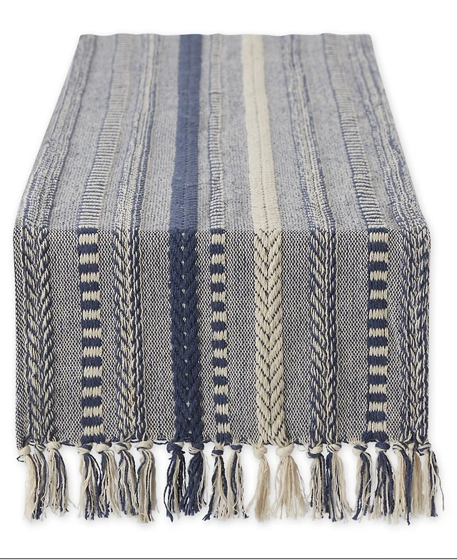 Seashore Stripe Fringed Table Runner 13" X 72"