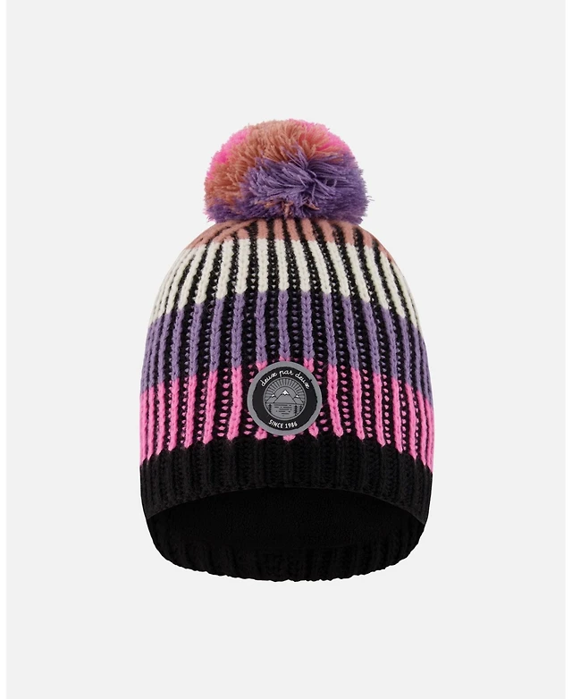 Deux par Boy Lined Peruvian Knit Pompom Hat Black, Blue and Brown - Toddler|Child