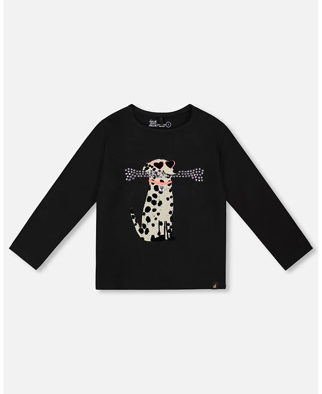 Deux par Girl Cotton T-Shirt Black with Dalmatian - Toddler|Child