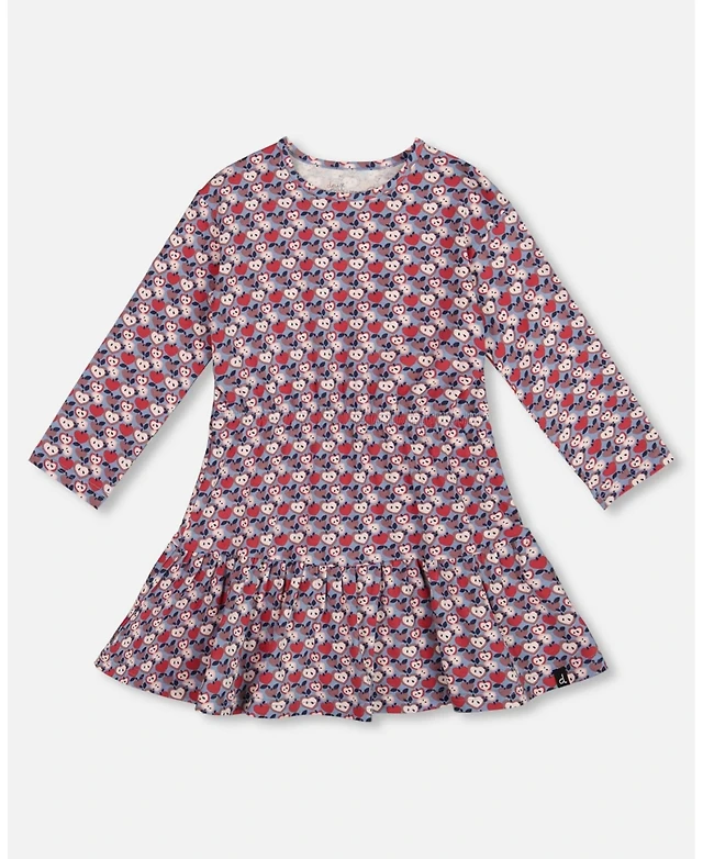 Deux par Little Boys Long Sleeve Cotton Allover Print Tee Navy Blue - Toddler|Child