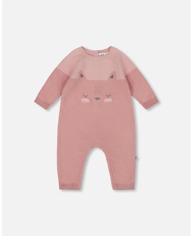 Deux par Deux Girl Knitted Dress with Flower Jacquard Old Pink and Beige - Child