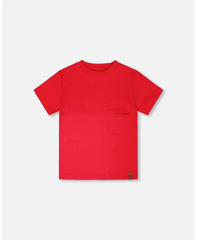 Deux par Big Boys Cotton Colorblock Jersey T-Shirt with Chest Pocket Rouge