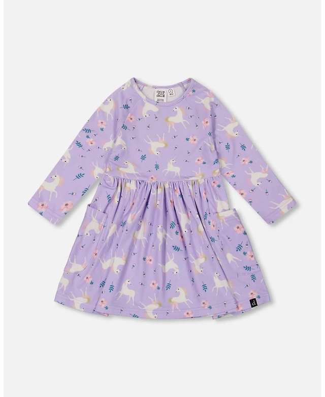 Deux par Baby Girls Bi-Material Dress with Muslin and Mesh Skirt Purple Gray