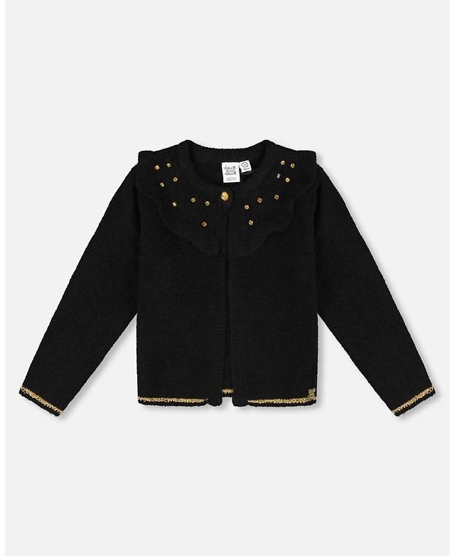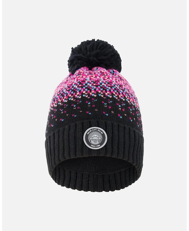 Deux par Deux Girl Lined Knit Pompom Hat Black and Pink - Toddler|Child