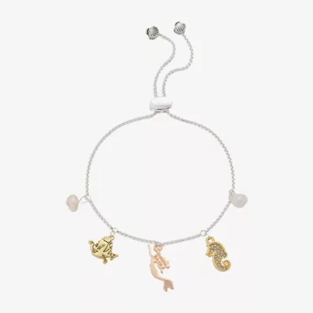Disney Classics Womens Crystal 10K Gold Over Brass 14k Rose Gold Over Brass Ariel Princess The Little Mermaid Charm Bracelet