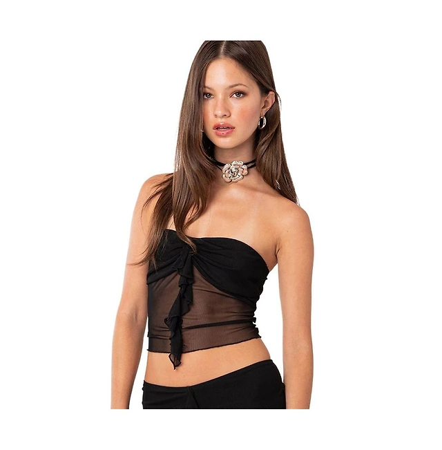 Edikted Womens Joy Asymmetric Sheer Mesh Tube Top