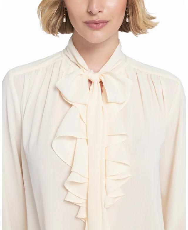 Elle Collection Women's Striped Bow Shirt Blouse Top