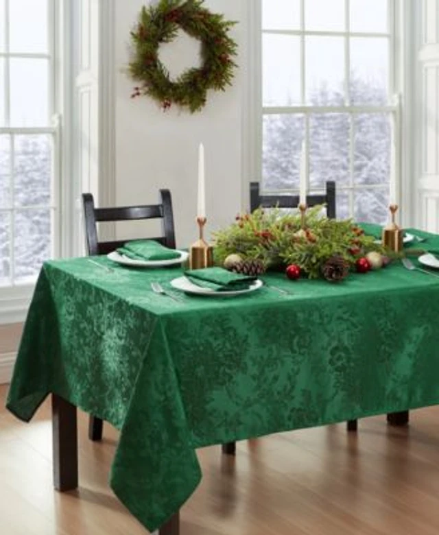 Elrene Holly Berry Flourish Holiday Fabric Rectangle Tablecloth