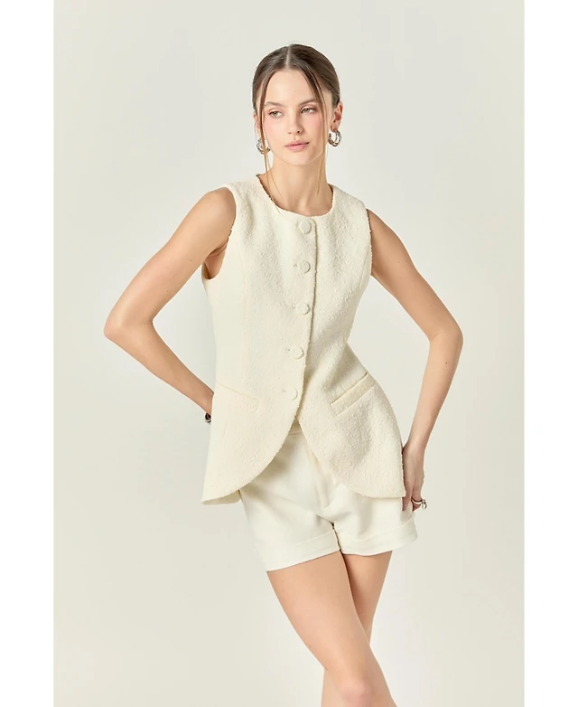 English Factory Women's Sleeveless Collar Zip Up Knit
