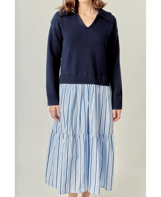 English Factory Women's Collar-Detail Combo Knit Mini Dress