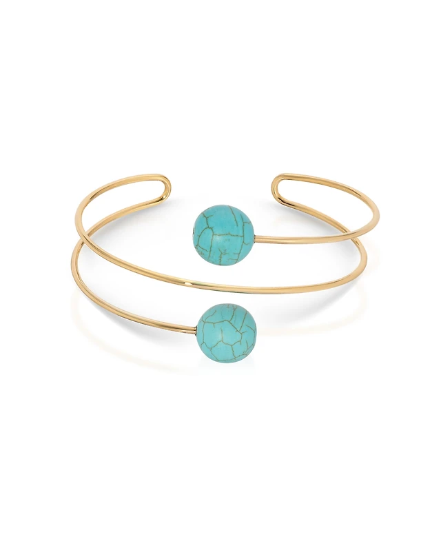 Ettika Turquoise Bead 18k Gold Plated Wire Cuff Bracelet