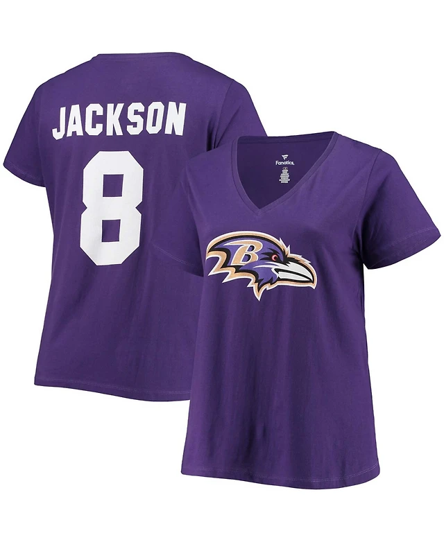 Women's Plus Size Lamar Jackson Purple Baltimore Ravens Name Number V-Neck T-shirt
