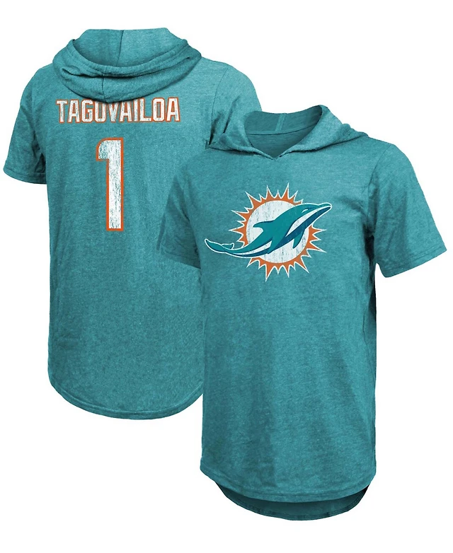 Men's Tua Tagovailoa Aqua Miami Dolphins Player Name Number Tri-Blend Hoodie T-shirt