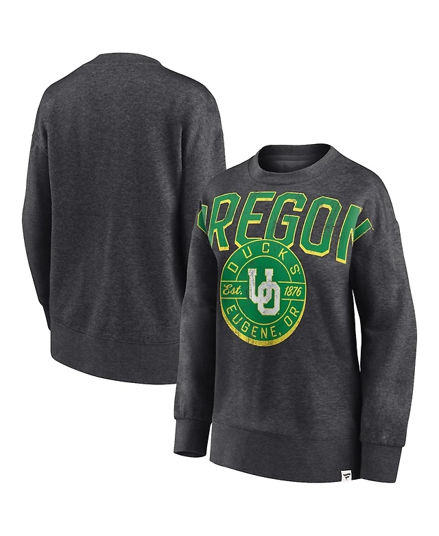 Women's Fanatics Heathered Charcoal Distressed Oregon Ducks Jump Distribution Pullover Sweatshirt