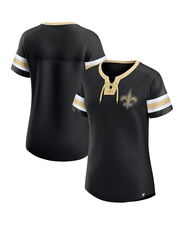 Fanatics Women's Black New Orleans Saints Bling Athena Jersey Style Lace-up T-Shirt
