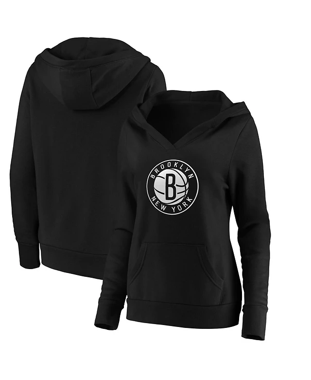Fanatics Women's Black Brooklyn Nets Primary Logo V-Neck Pullover Hoodie