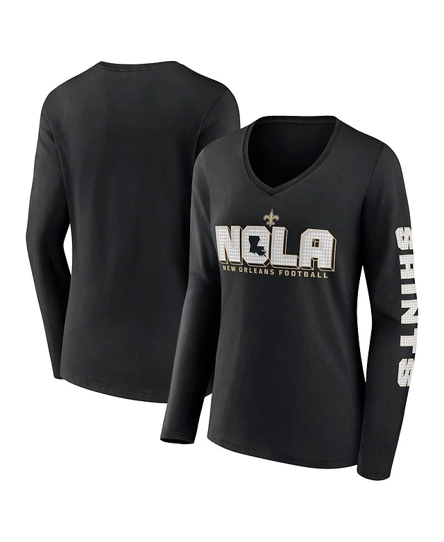 Fanatics Women's Black New Orleans Saints Hometown Sweep Long Sleeve V-Neck T-Shirt