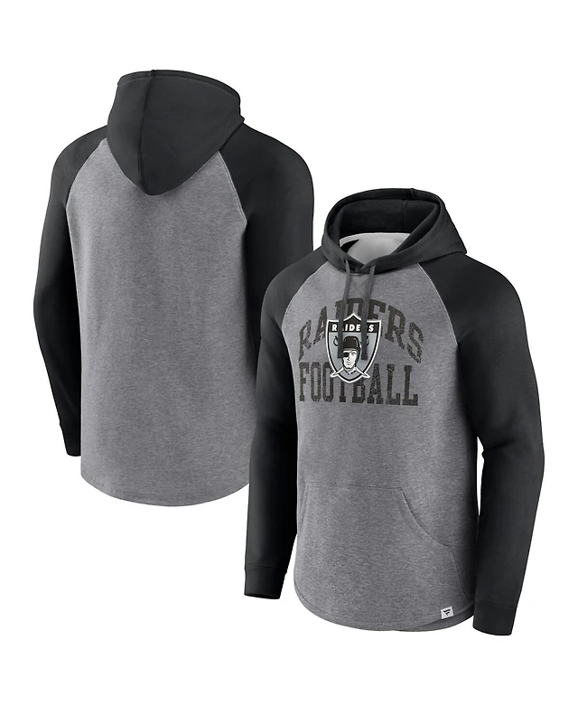 Men's Fanatics Heather Gray Distressed Las Vegas Raiders Favorite Arch Raglan Pullover Hoodie
