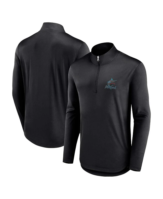 Men's Fanatics Black Miami Marlins Quarterback Quarter-Zip Top