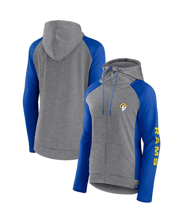 Women's Fanatics Heather Gray, College Royal Los Angeles Rams Blind Side Lightweight Full-Zip Hoodie