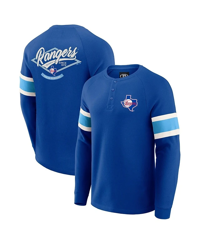 Darius Rucker Collection By Fanatics Men's Royal Texas Rangers Waffle-Knit Raglan Long Sleeve Henley T-Shirt