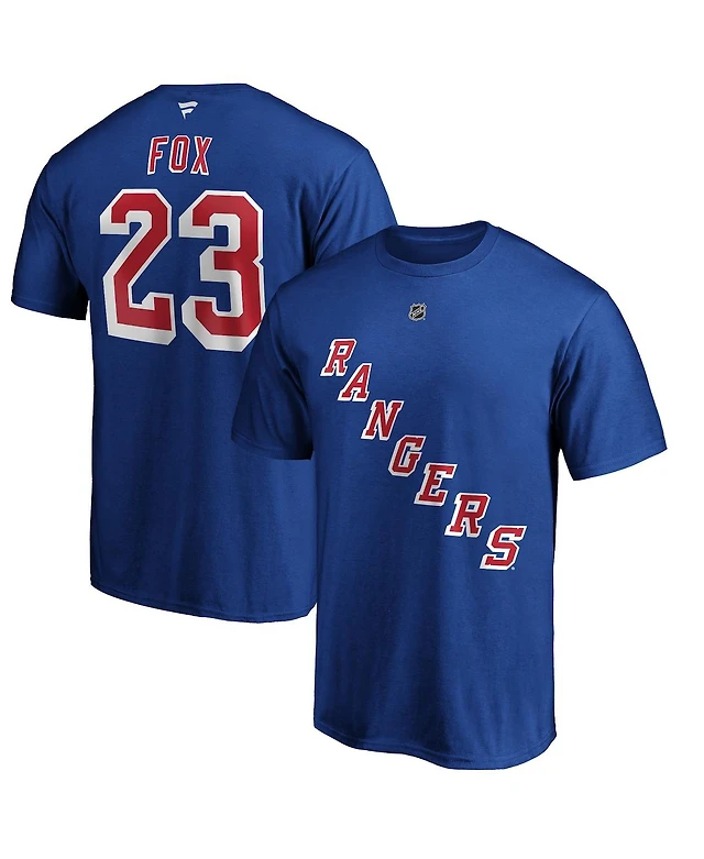 Men's Fanatics Adam Fox Blue New York Rangers Authentic Stack Name and Number T-shirt