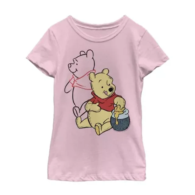 Little & Big Kid Girls Crew Neck Short Sleeve Slim Fit Winnie The Pooh Graphic T-Shirt