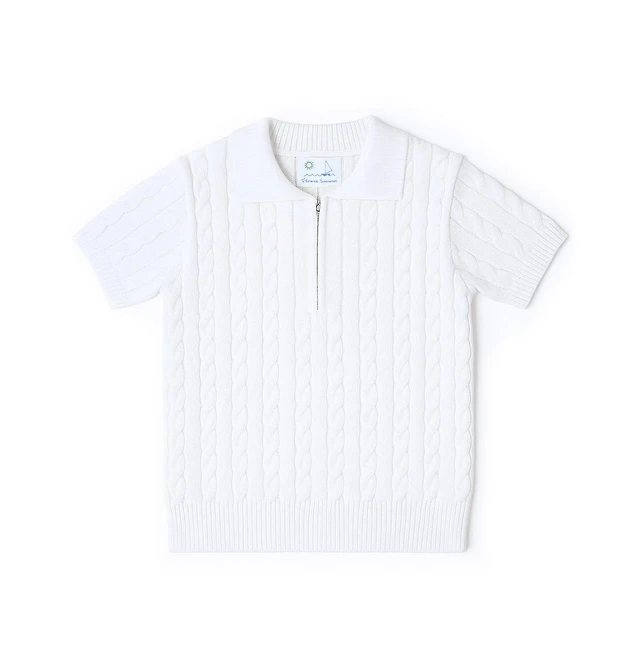 Florence Eiseman Big Boys Short Sleeve Polo Cable Sweater