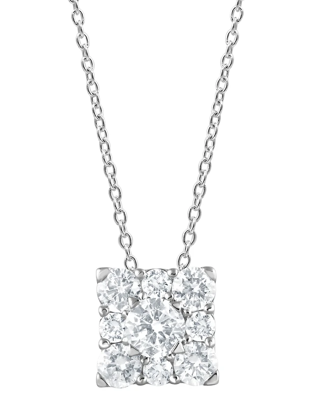 Forever Grown Diamonds Lab Grown Diamond Square Cluster Pendant Necklace (1 ct. t.w.) in Sterling Silver, 16" + 2" extender