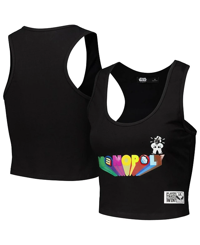 Freeze Max Women's Black Monopoly Tri-Blend Cropped Racerback Tank Top