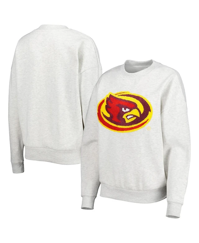 Women's Gameday Couture Heather Gray Iowa State Cyclones Chenille Patch Fleece Pullover Sweatshirt