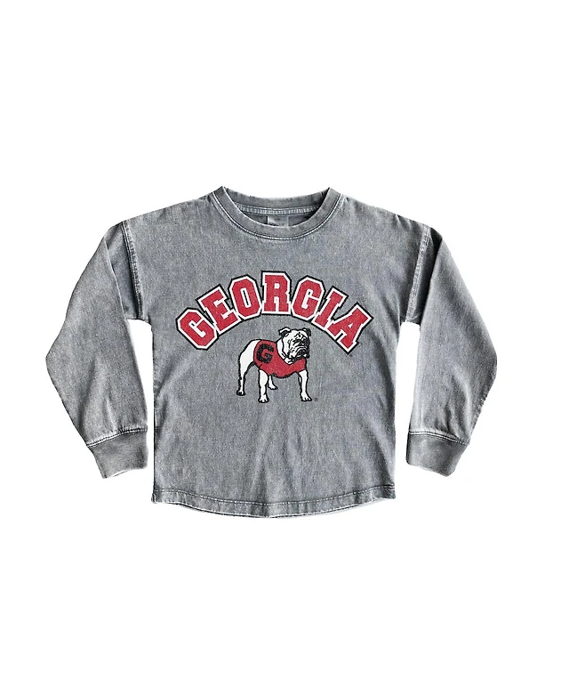 Gameday Couture Big Girls Gray Georgia Bulldogs Faded Wash Pullover Top