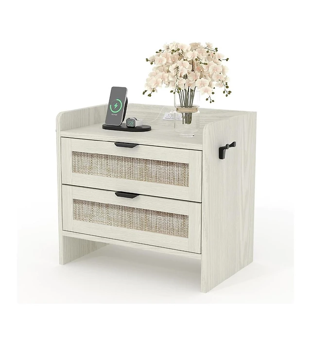 8 Drawer Double Dresser for Bedroom, Rattan Chest of Dressers, Modern Wooden Dresser Chest, Beside Table for Closet, Nursery, Living Room and Entryway