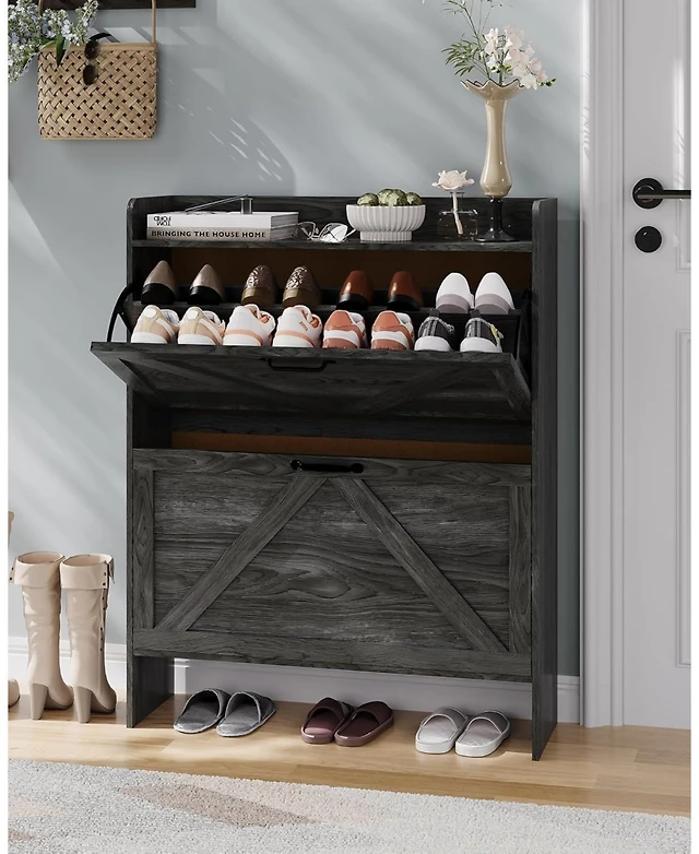 gaomon Shoe Cabinet with 3 Flip Drawers Modern Fluted Cabinet with Adjustable Shelves Freestanding Wooden Shoe Organizer
