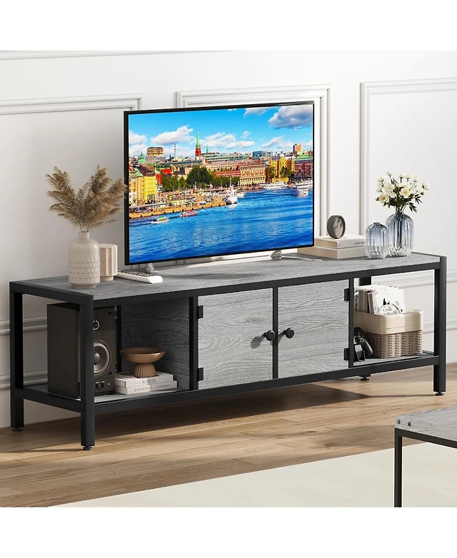 gaomon Rustic 6-Door Wooden Tv Console, Large Storage Media Cabinet for Living Room & Home Decor, White