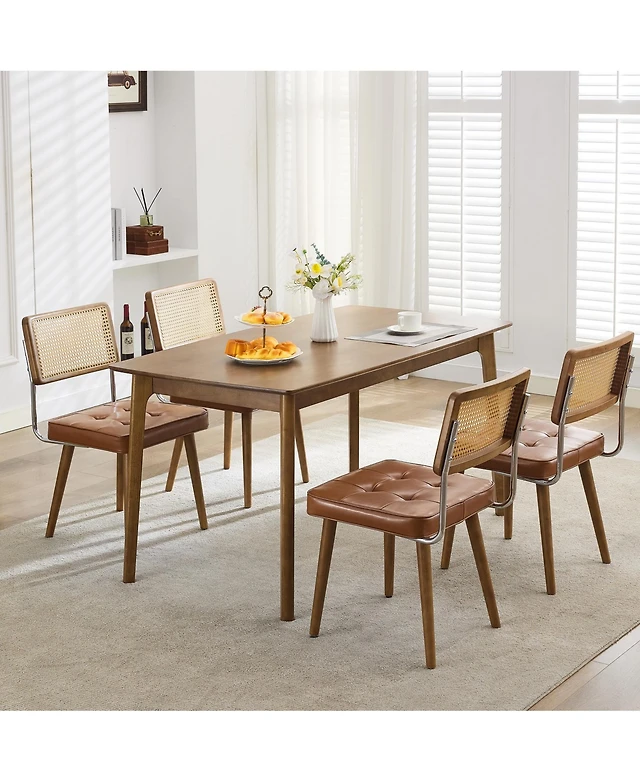 gaomon Set of 2 Mid Century Rattan Dining Chairs, Velvet Upholstered Seat Kitchen Chairs with Sturdy Metal Legs