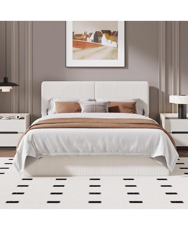 gaomon Bed Frame with Velvet Headboard, Upholstered Soft Corduroy Fabric Platform with Wooden Slats Support & Heavy Duty Feet