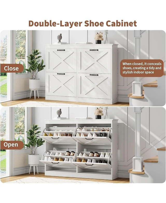gaomon Modern Farmhouse Entryway Shoe Storage Cabinet with Drawers and Adjustable Shelves