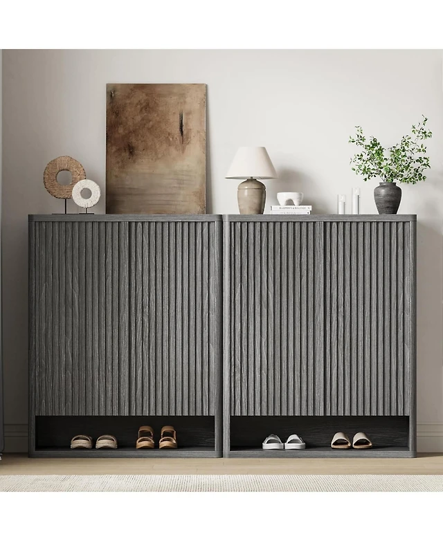 gaomon 48 inch Tall Freestanding Fluted Shoe Storage Cabinet with 2 Flip Drawers Hidden Narrow Shoe Rack Organizer Cabinet Storage