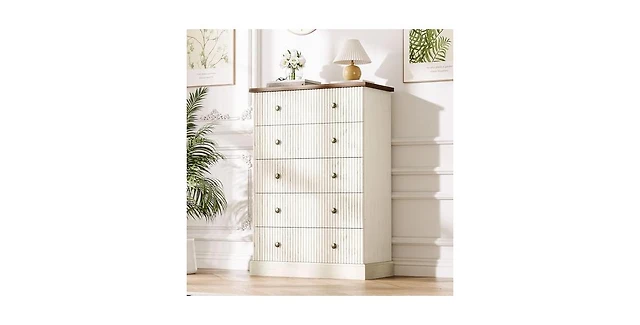 gaomon 5 Drawer Tall Dresser for Bedroom, 31.5" Wide Fluted Chest of Drawers, Modern Wood Storage Cabinet