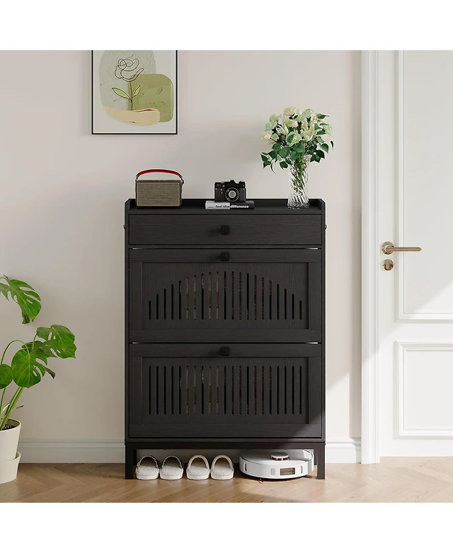 gaomon Shoe Cabinet with 2 Flip Drawers & 1 Top Drawer, Wooden Organizer Adjustable Shelf, Freestanding Storage Cabinets