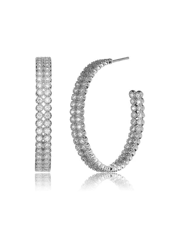 Radiant Sterling Silver & 14K Gold Plated Cubic Zirconia Hoop Earrings