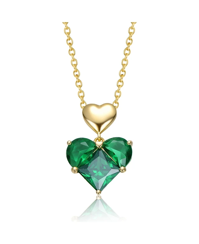 Sterling Silver 14K Gold Plated with Green, Red, or Blue Cubic Zirconia Two-Stone Heart Stud Earrings