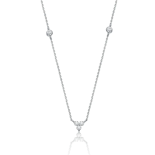 White Gold Plated with Clear Cubic Zirconia Tennis Necklace with Heart Centerpiece