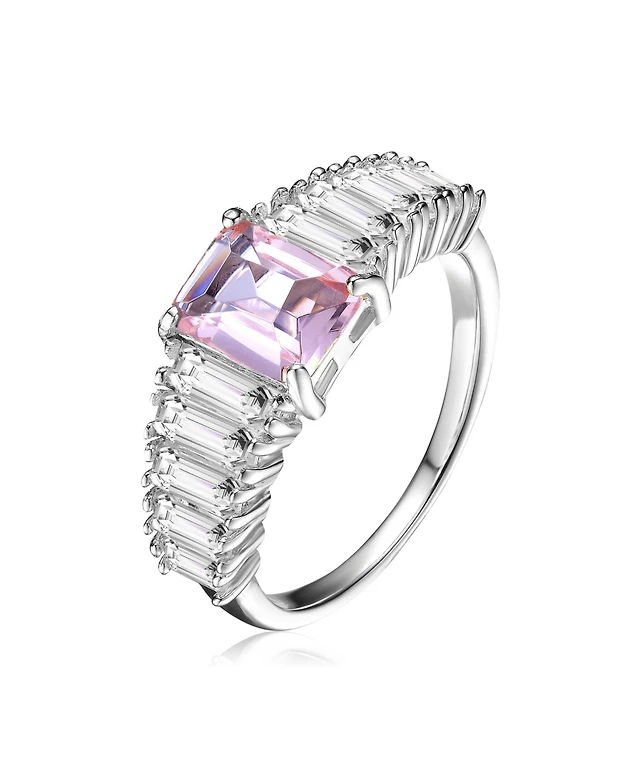 Genevive Sterling Silver White Gold Plated Colored Cubic Zirconia Cocktail Ring