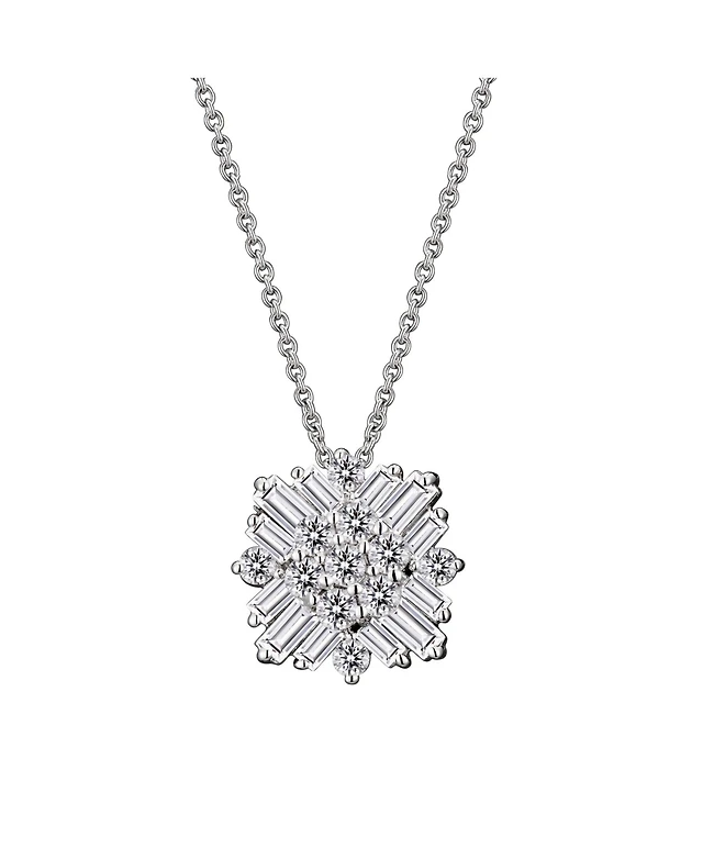 Sterling Silver White Gold Plated with Clear Cubic Zirconia Square Shape Pendant Necklace