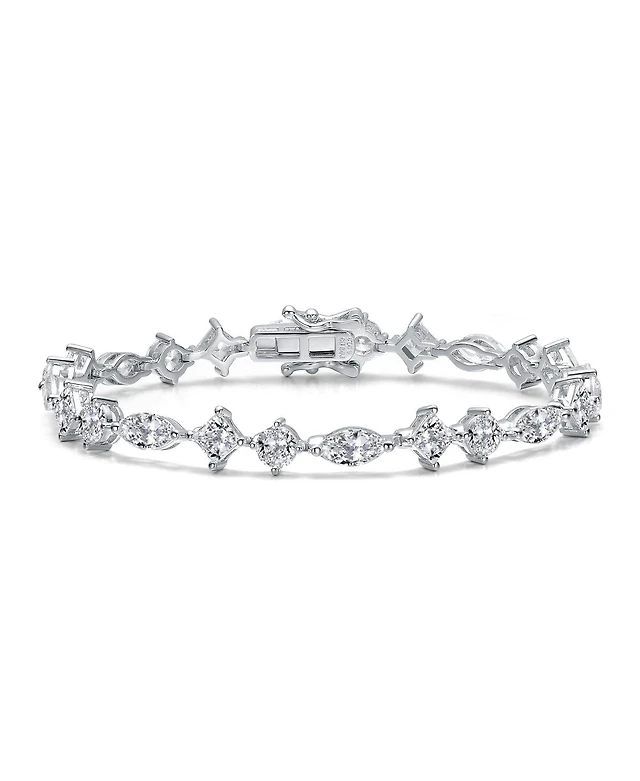 Genevive Sterling Silver White Gold Plated Cubic Zirconia Elegant Bracelet