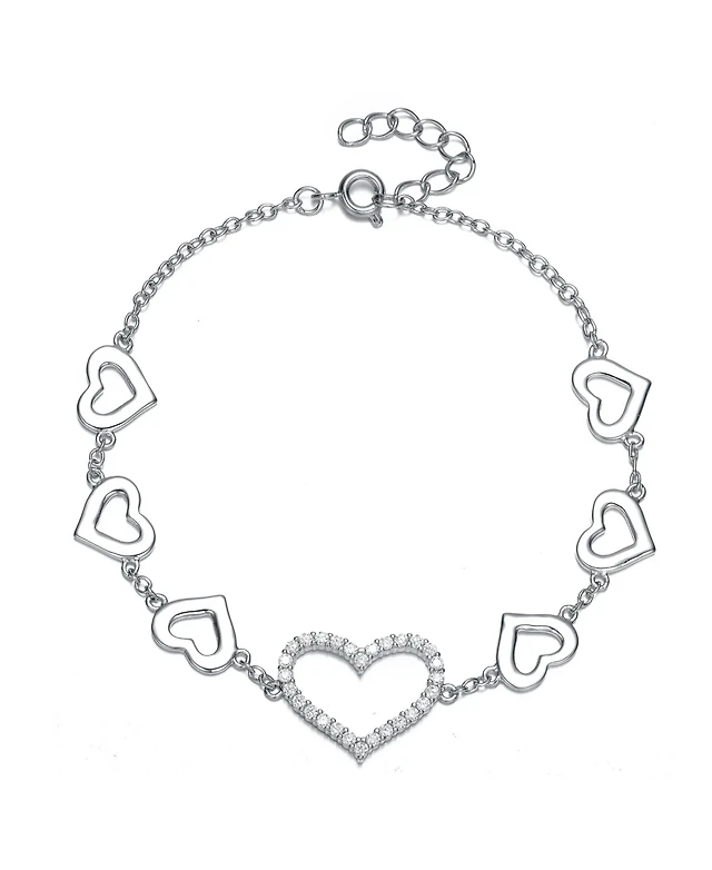 Sterling Silver Clear Round and Circle Baguette Cubic Zirconia Link Bracelet