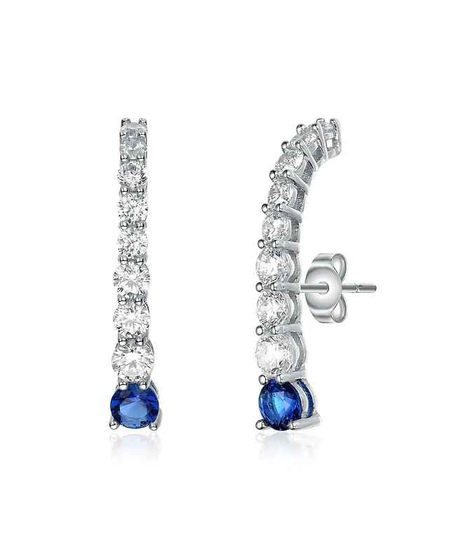 Cubic Zirconia Sterling Silver Rhodium Plated Blue Round Chandelier Earrings