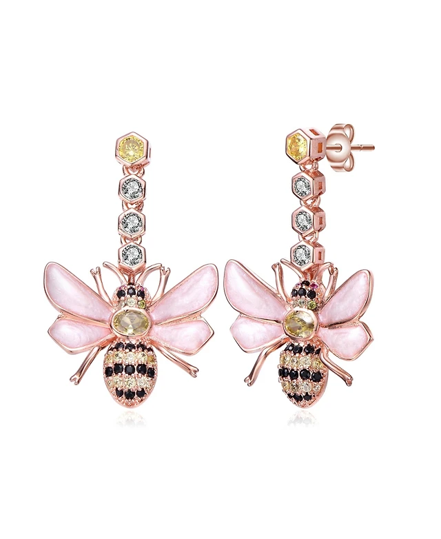 Sterling Silver 14K Gold Plated Yellow Cubic Zirconia Bee Stud Butterfly Earrings
